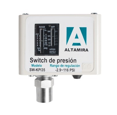 Interruptores de presión ALTAMIRA estándar y serie KPI (para altas presiones), manómetros marca ALTAMIRA con glicerina y seco. Interruptores de presión Square D estándar, con desconexión por baja presión, para alto HP y para trabajo pesado.