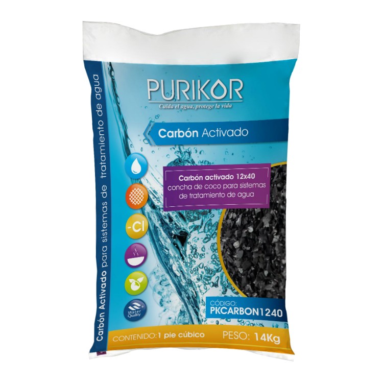 El carbón activado 12x40 concha de coco PURIKOR se utiliza ampliamente en procesos de tratamiento de agua, teniendo como funciones principales las de eliminar el cloro libre que por norma se adiciona al agua potable y absorber los contaminantes orgánicos que por su naturaleza están en el agua y que se encuentran en bajas concentraciones.