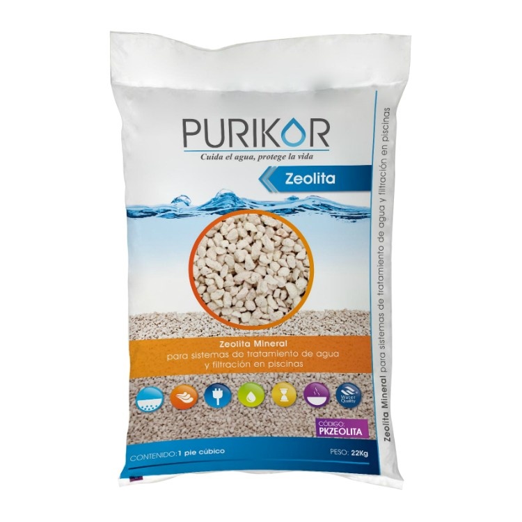 "Zeolita" que es el medio de filtración granular con el mejor desempeño, hecho a base de un mineral con propiedades únicas y la cual está diseñada tanto para sistemas de tratamiento de agua, como para filtración en piscinas.